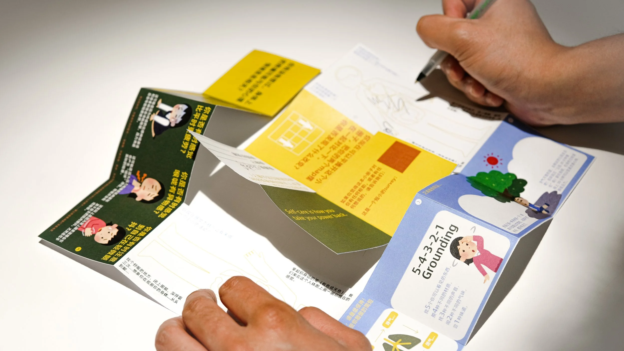 Participants are encouraged to use the pamphlet in daily life to continue their personal care journey and track emotional progress. The foldable design allows for easy comparison of emotional changes over time, promoting self-awareness in a way that’s both visual and personal.